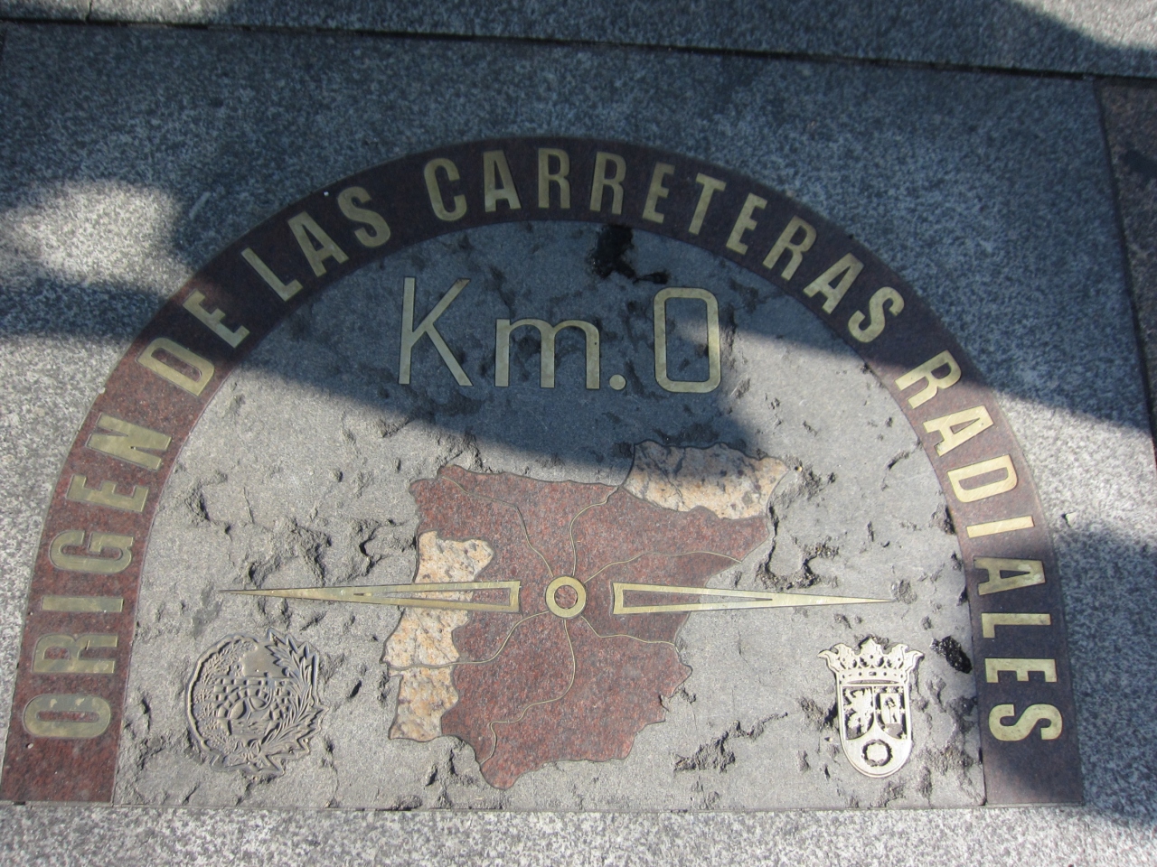 人が多いので、ちょっと治安に不安がありました。首都から地方に延びる道路の起点があるというので探しました。時計台のあるマドリッド自治政府庁前の歩道にありました。写真を撮って次に移動しました。地下鉄ソル駅をでたところにあります。