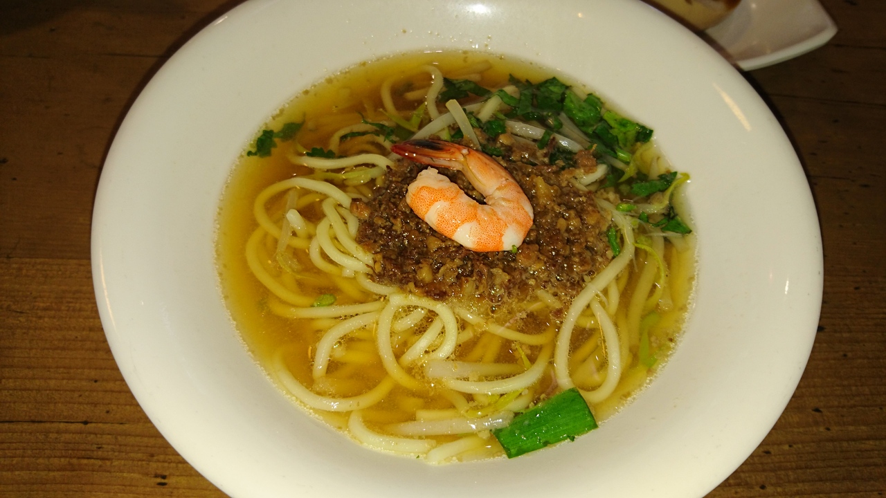 坦仔麺と半熟玉子、蝦巻を食べました。