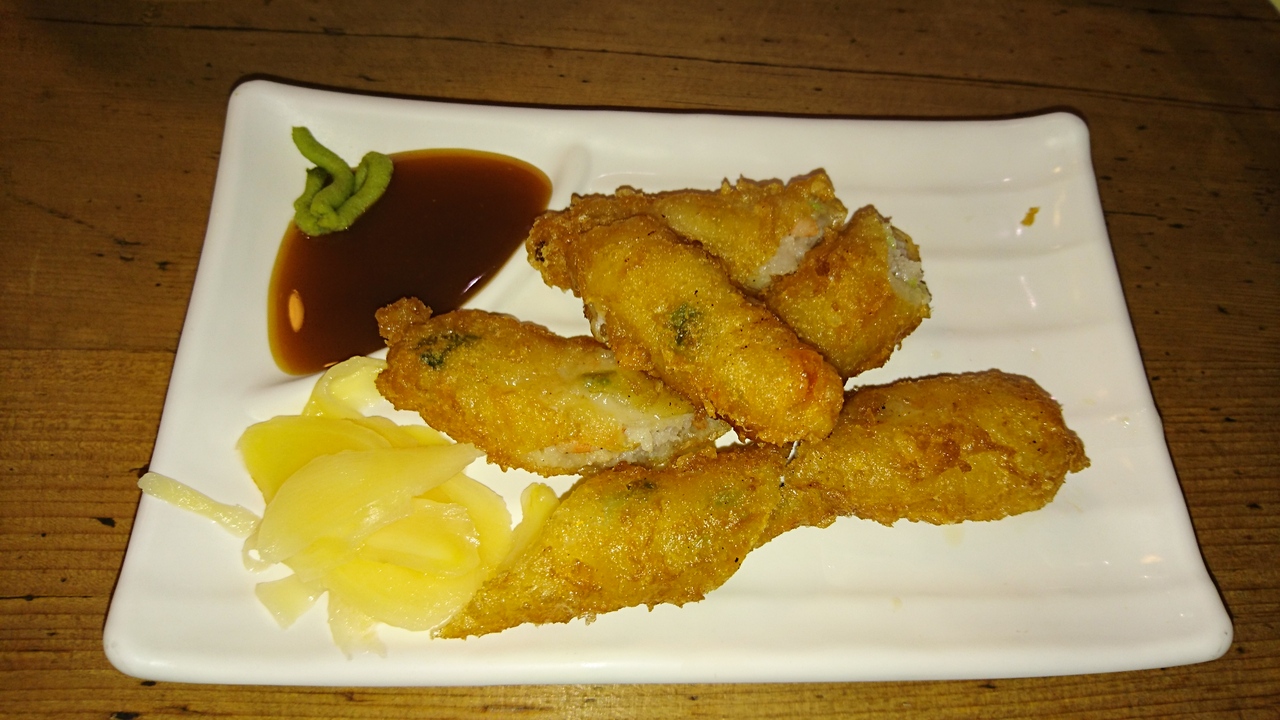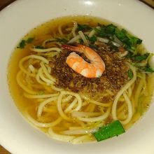 坦仔麺は小振りなので、それ1つだと絶対物足りないです。坦仔麺の麺は台湾特有で柔らかなめ、スープはあっさり。蝦巻は熱々でサクサク、ワサビとよく合いました。