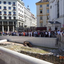 ミヒャエル広場の中央付近には、古代ローマ時代の遺跡が残っています。