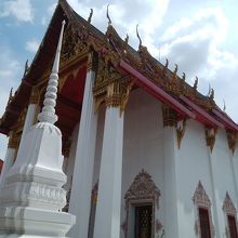 アクセスはファラムポーン駅からだと、徒歩で10分ぐらいの場所にあります。自分はワットトライミットを見学した後に移動しましたが、そこからでも徒歩で6~7分の場所になります。チャイナタウンからも近い場所になりますが、そのエリアには入らないです。大きな寺院なので参拝客もたくさんいるかと思いましたが、ほとんどいなくてひっそりとしていました。観光客が居なくて、本来の寺院の空間になっている感じです。白色のお堂と装飾のきらびやかさに派手すぎず、落ち着いたお堂のある境内だと思います。