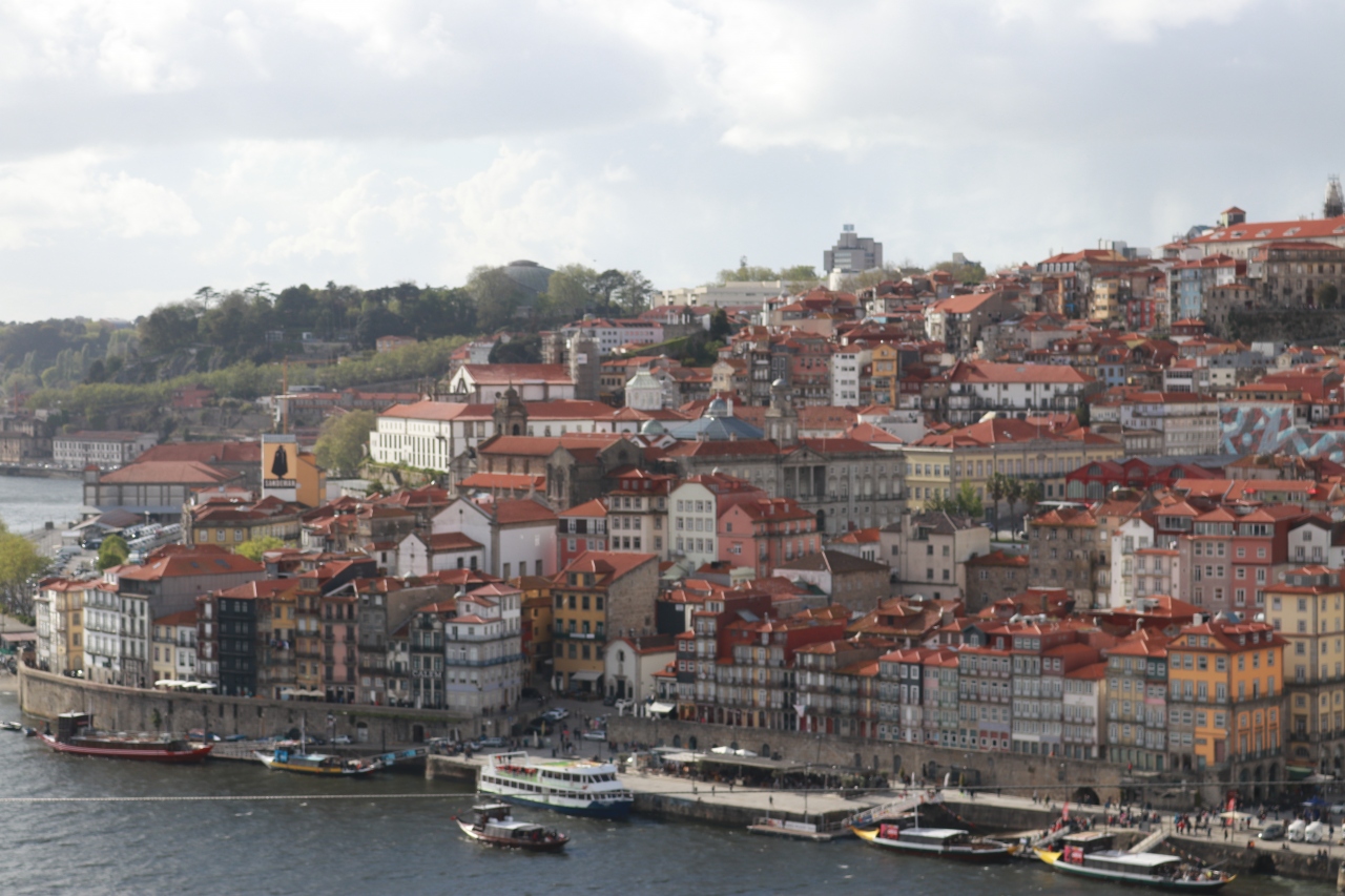 ドロウ川沿いにある街並みになります。ドン・ルイスI世橋、またはドロウ川のクルーズから、オレンジ色の屋根と黄色などのカラフルな中世ヨーロッパ風の建物が並んでいます。晴れていると、青い空と、カラフルな街並みのコントラストがよいです。