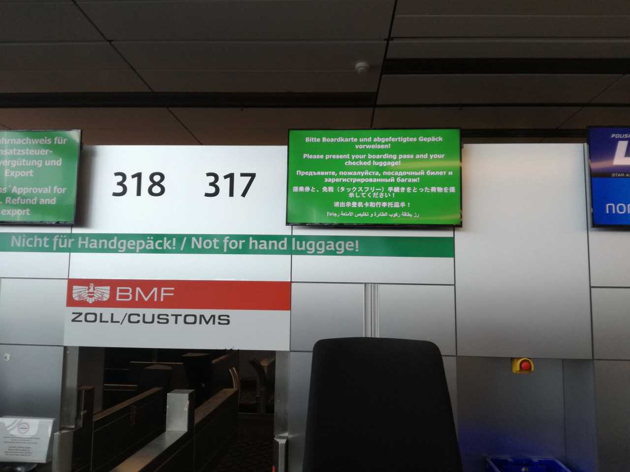 荷物を預けず、いったん免税手続きの税関にいってサインをもらいました。