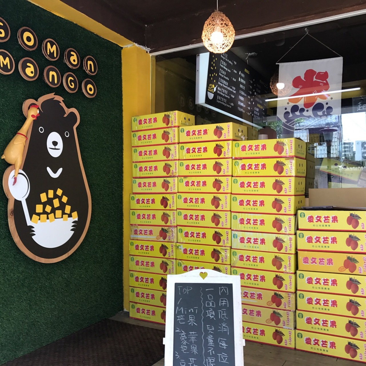 MRT士林駅1番出口からMRTの高架下を直進し、横断歩道を渡ってすぐに「goman mango」が右手にあります