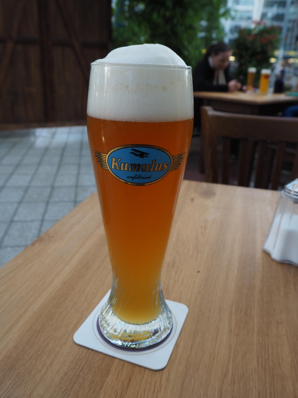 頂いたのは、醸造ビールの中でKumulusという白ビール2.75ユーロと、チーズシュペッツレ9.50ユーロ。