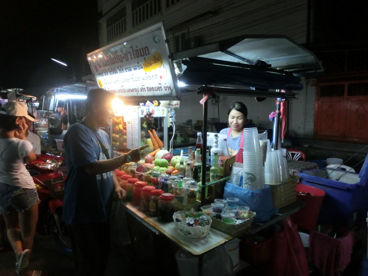 割と何でもあります。フルーツシェイクの屋台から飲食店、お土産店まで。