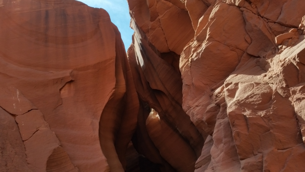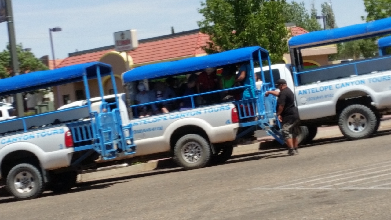 ツアーで訪問しました。ナボハ族の土地で、バスからトラックの荷台に乗り替えて、行きました。持ち物はパスポートケースと、ポケットに入るもののみ。鉄砲水が赤い砂岩を削ってできた、自然の造形美が広がっていました。大変美しいです。通路は大変狭く、すれ違えないほど。