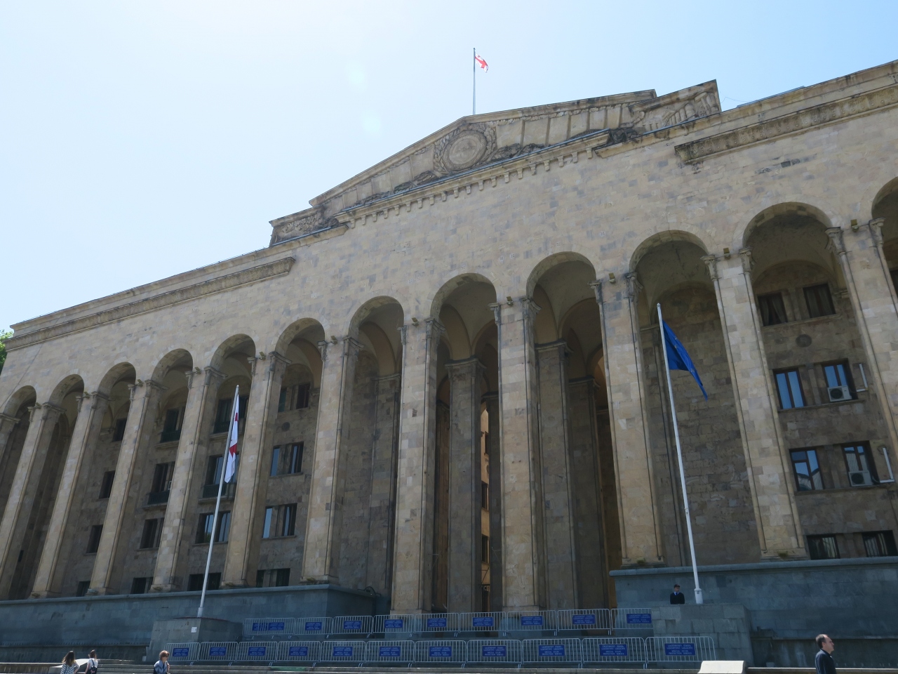 トビリシ市街を貫く「ルスタヴェリ大通り」の両側には歴史ある建物が並びますが、「パーラメント オブ ジョージア」もその一つです。