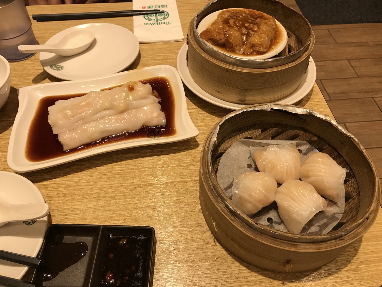 金曜の夜21時に行きました。雨が降っていたせいか、時間が遅いせいか、待たずにすぐ入れました。とてもカジュアルな雰囲気で、ファミレスのようでした。蒸海老餃子とX O炒飯、海老の湯葉巻き、海老のワンタン巻き?を食べました。どれも普通に美味しかったです。本場香港の味も試してみたいと思いましたが、今回はあまり印象に残りませんでした。