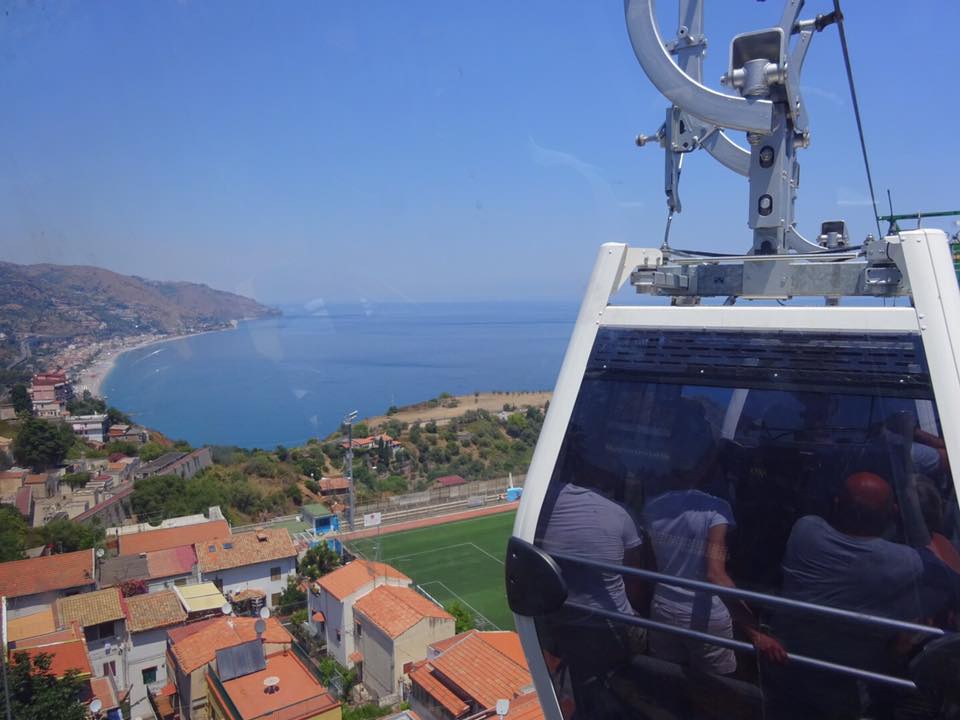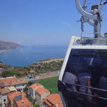 夏季限定で利用できるロープウェイ。タオルミーナの市街地は高い崖の上にあるため、海岸からの移動には非常に重宝します。