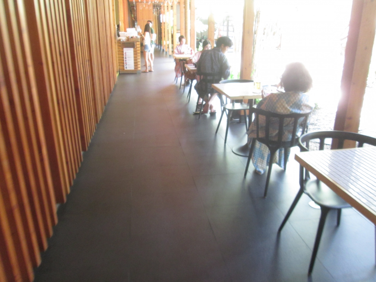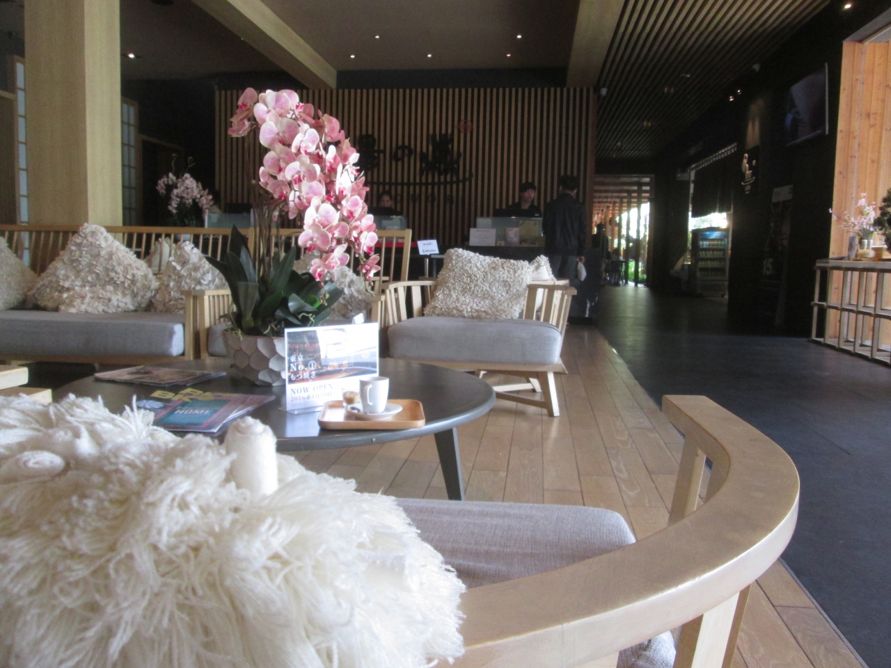 湯の森の館内は和の空間になっています。落ち着いた雰囲気で、お風呂に入る前と後でもリラックスできます。おそらく人工的でしょうが、竹が植えられて、ミニ日本庭園がありました。日本のホテルでも旅館に宿泊しない限り、浴衣を着る機会がないですが、こちらには館内用の浴衣も完備されていました。