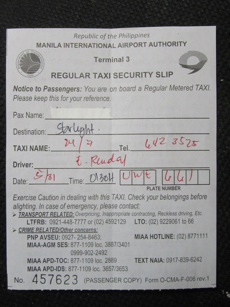 ニノイ・アキノ国際空港のターミナル1からホテルまで乗車した。