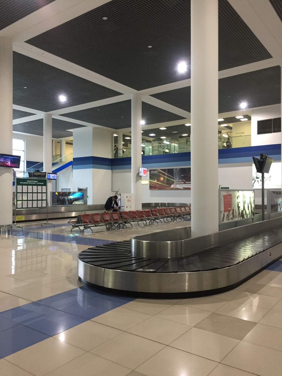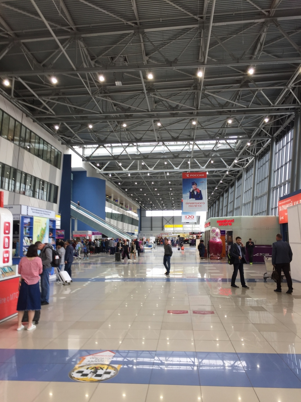 空港の建物は新しいです。でも、そもそも運行便が少ないのか、人が少ない印象です。市内までは鉄道が出ているのですが、17時半が最終。19時に着いた時にはタクシー以外の選択肢がありませんでした。タクシーはメーターですが、安心なのは空港でチケットを買うことだと思います。1500ルーブルでした。出国時、土産物屋は少ないながらもあります。ラウンジもあります。