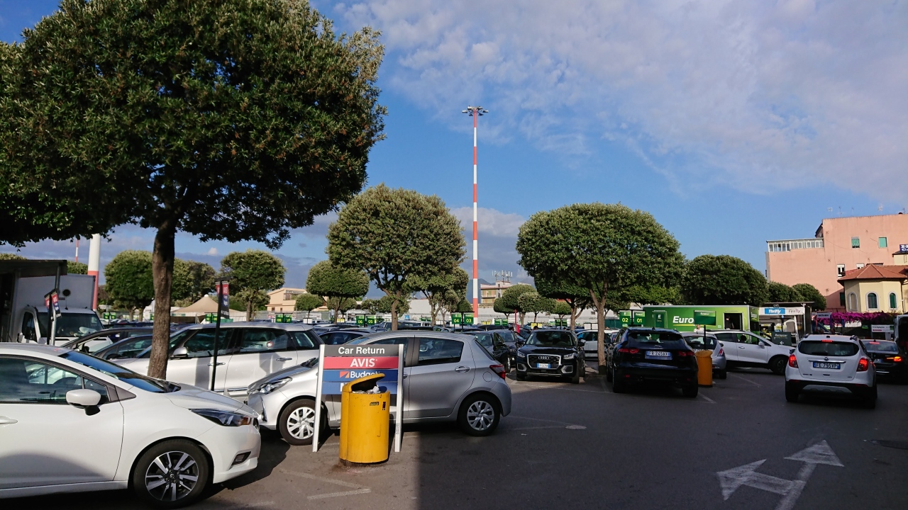 アマルフィ海岸をドライブするため、ナポリの空港でBudgetレンタカーを借りました。Expediaで予約したのですが、事前情報と違って空港内にカウンターはなく、シャトルバスでレンタカーターミナルに移動する方式でした。