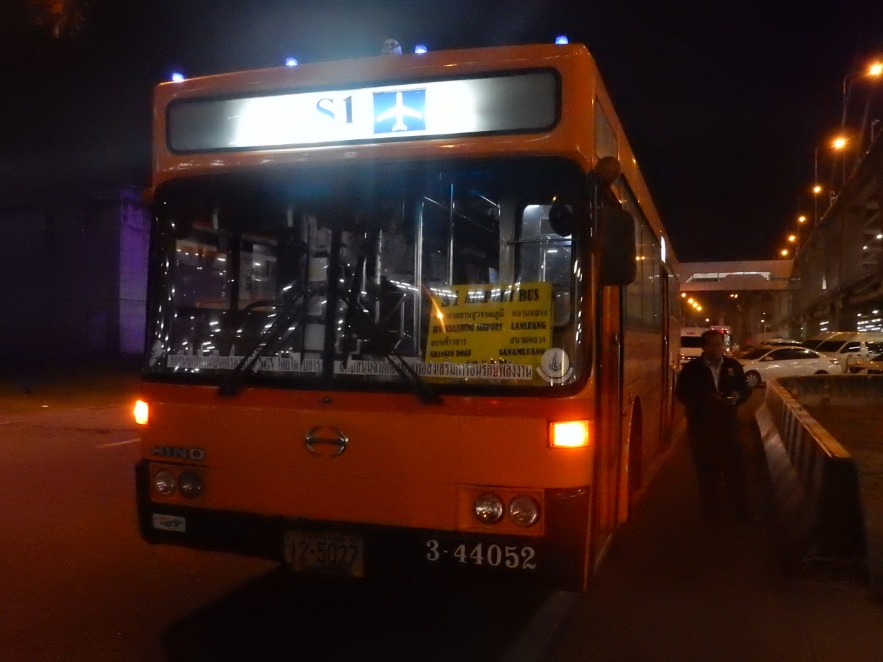 S1がスワンナブーム空港空港からカオサン方面行きのバスのバスだ。料金は60バーツ。本数はあまり多くないようだ。今までエアポートレイルリンクとバスを使ってカオサン方面に行っていたが、これなら乗り換えなしで行けるの便利だ。