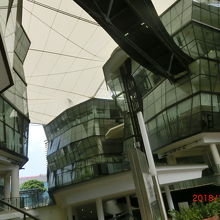 通り抜けて行くと、ユニークな形のいいビルがありました。