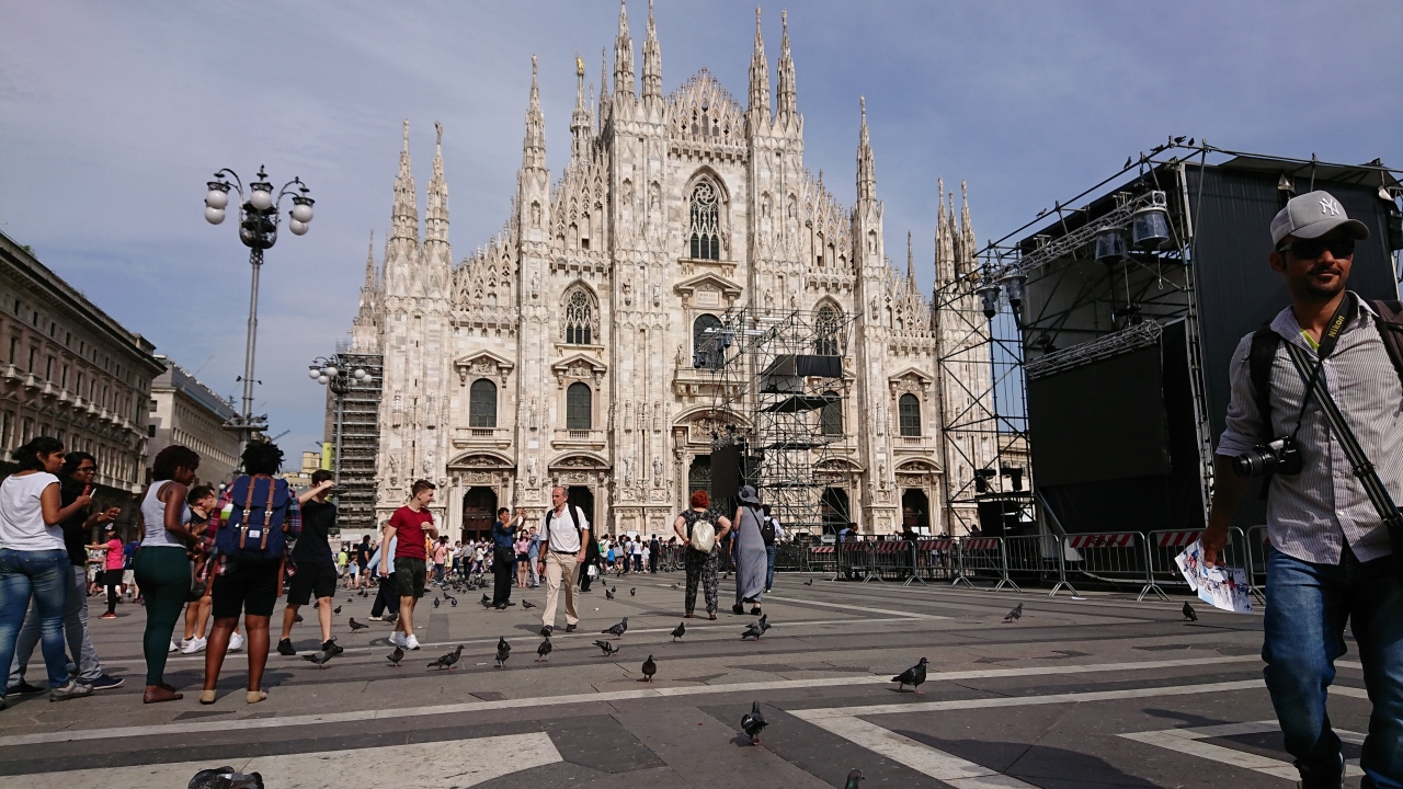 ミラノ観光の定番と言えばドゥオーモ。おそらく観光客の誰もが使う駅だと思います。中央駅から地下鉄に乗り、ドゥオーモ駅で降りて地上に出ると、目の前にすぐドゥオーモが現れてびっくりしました。出口は複数ありますが、どこから出たとしても迷うことはないでしょう。