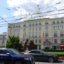 広場の周りをトラムやバスが走る大通りが取り囲んでいます。