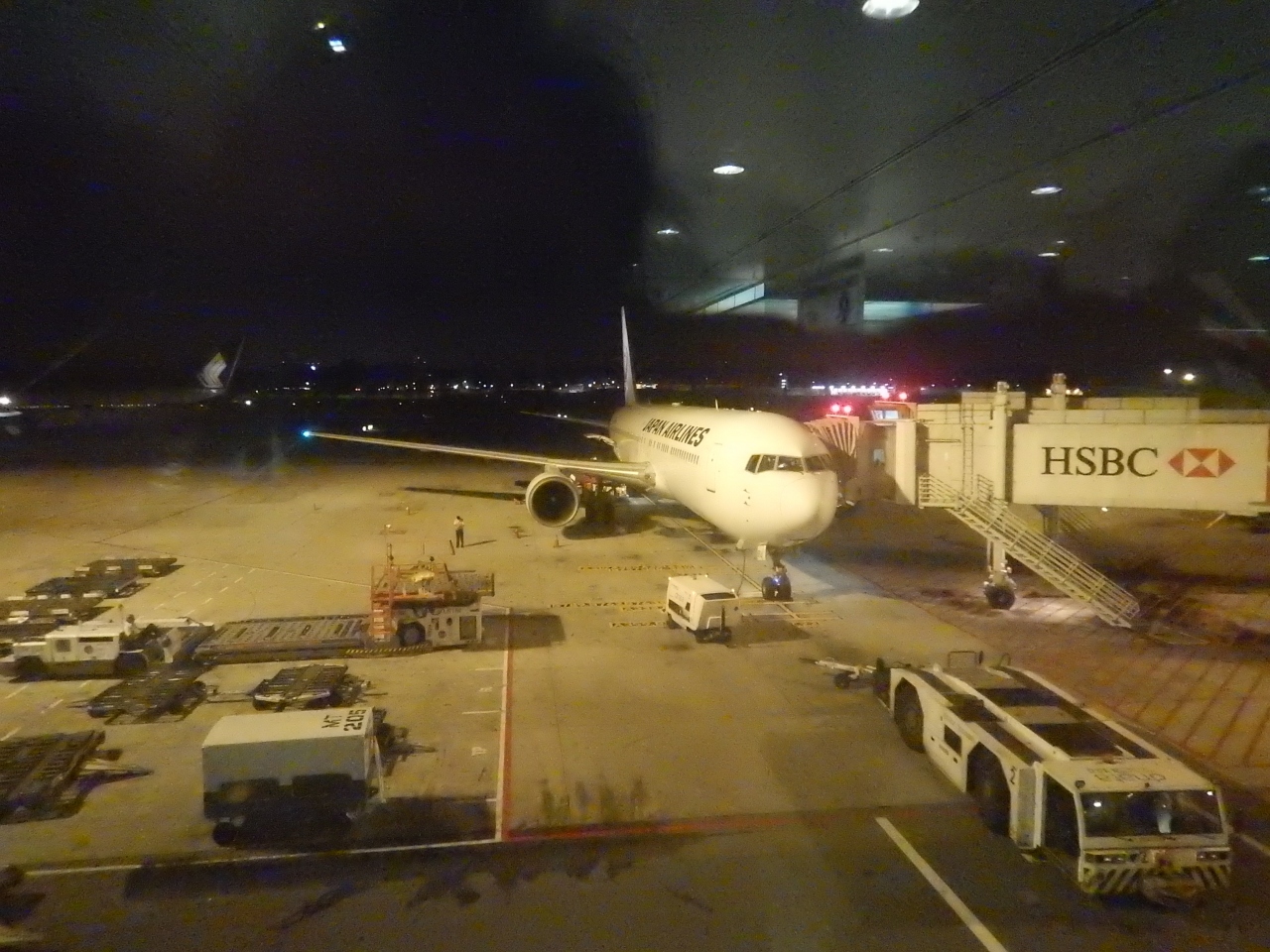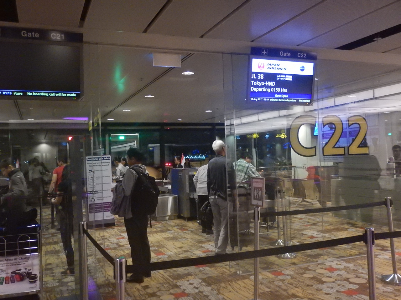 JAL38便、深夜1時50分発に乗るために空港へ行く。到着したのは午後9時前。約5時間空港で待つことになった。いつもろくに下調べしていない。この時は空港内を歩いているとアーリーチェックインができることを知った。JALの場合は12時間前から荷物を預けられる。荷物を預け、出国手続きをして、ゆっくりとラウンジで過ごすことができたのはよかった。