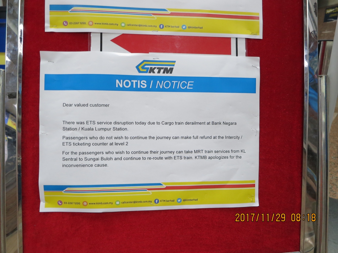 KTM、LRT、MRT、ERS、Monorailなど様々な電車が発着する大きな駅