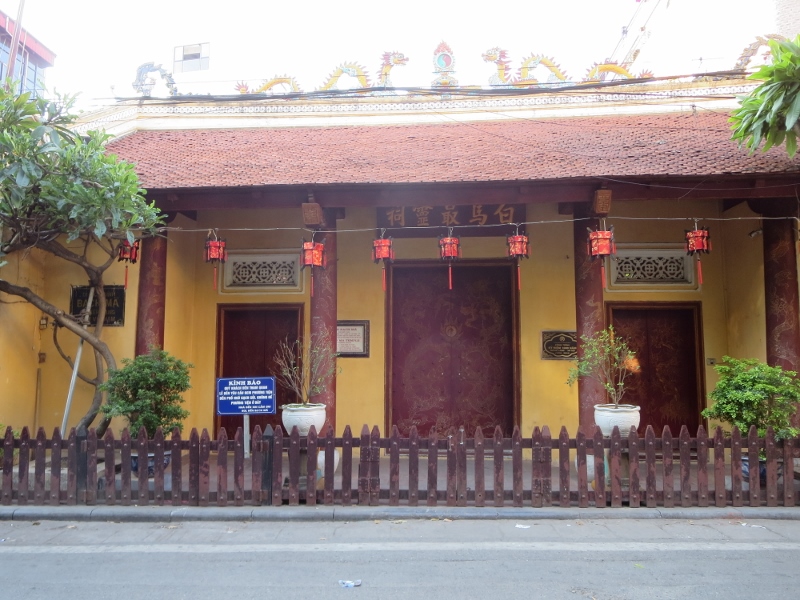 旧市街のオートバイが駆け抜ける賑やかな通りの一角にありました。白馬神が祀られていますが、リー朝の始祖リータイトーの夢に白馬が現れ城壁の場所を示したとの伝説の場所のようです。正面は閉まっていますが、時間内なら左側のくぐり戸から入れます。