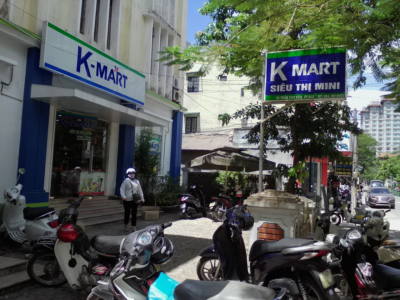 フエ市内にいくつかあるコンビニ(風の商店)です。店内の商品の約9割がハングル文字が書かれた韓国製品。 K-MARTに限ったことではありませんが市内にあるコンビニは、はっきり言って値段が高いです。水1.5L、フーダ330ml缶はいずれも1.5万ドン。Big Cで買えばそれぞれ6500ドン、9400ドンです。ただし冷えてはいませんが…。冷えてる水なら普通の商店でも1万ドン出せば買えます。わざわざコンビニで買う必要はまったくありません。