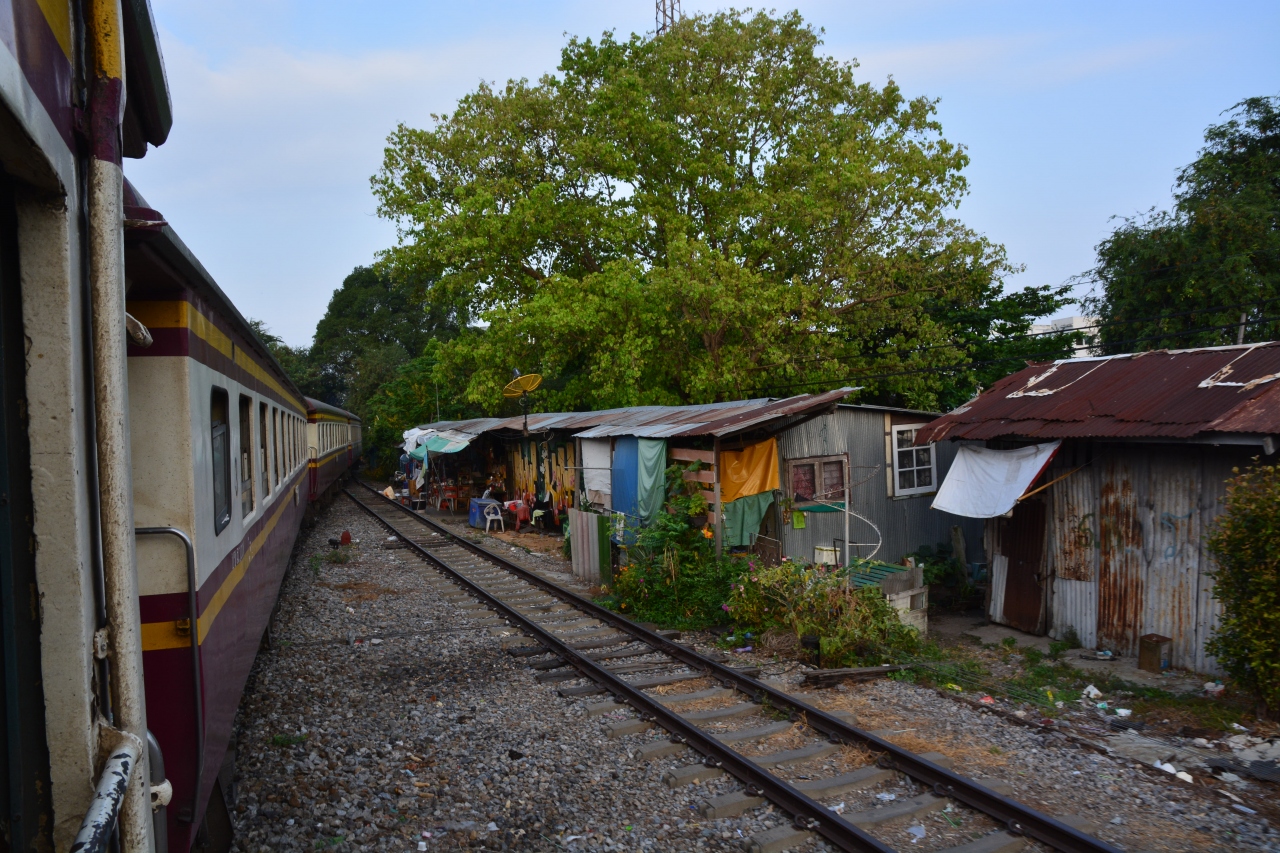 見どころとしてはバンコクを出てすぐの市街地内(線路側から生活風景が見れます)