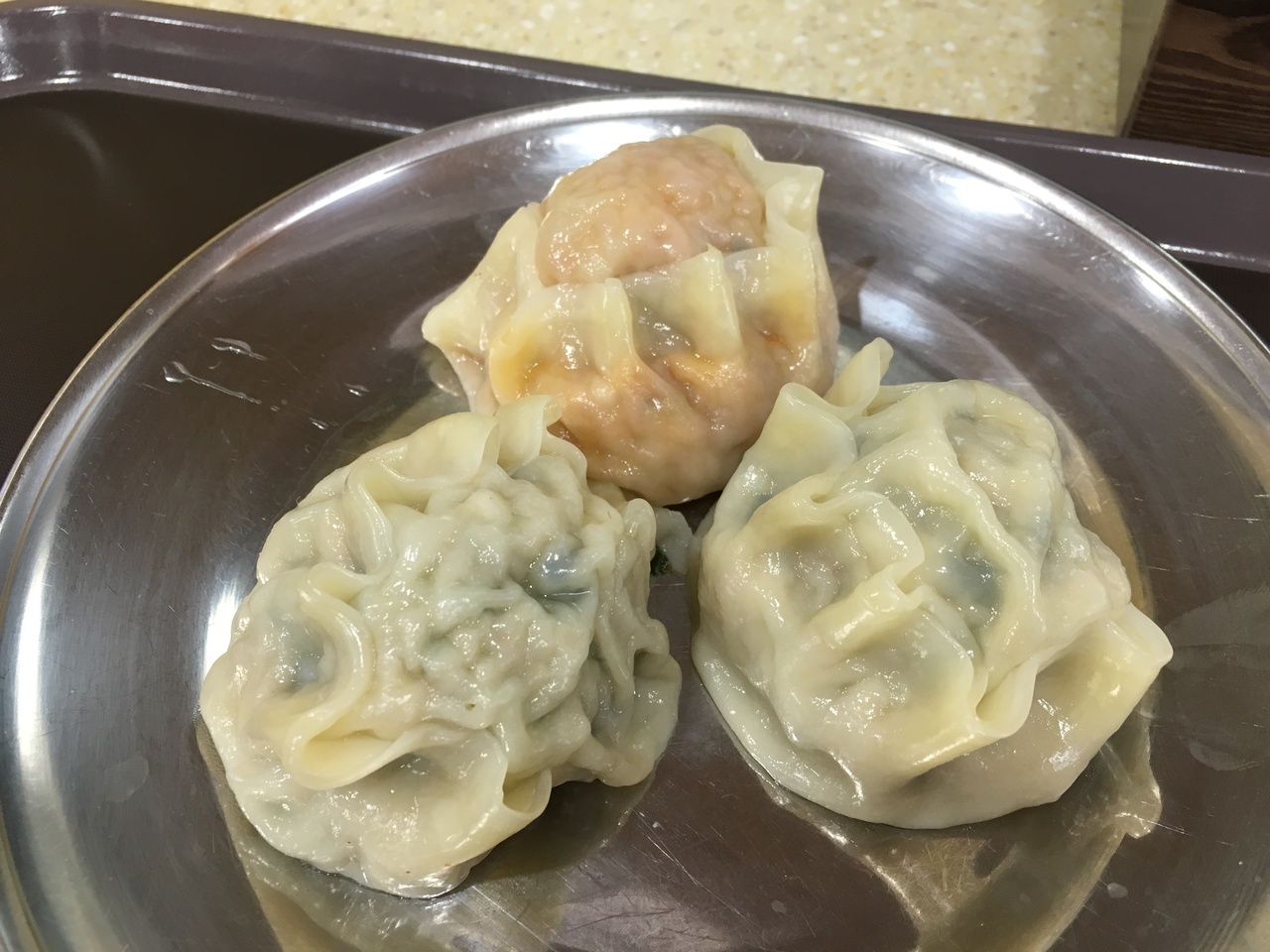 店内のインスタントラーメン売り場前のカウンタータイプの麺料理店を利用しました。メニューは冷麺、ビビン麺、餃子などで、餃子は注文後にセイロで蒸し始め熱々で提供されます。皮が薄く具がぎっしり詰まっていました。買い物途中の休憩や小腹が空いた時に便利なお店です。