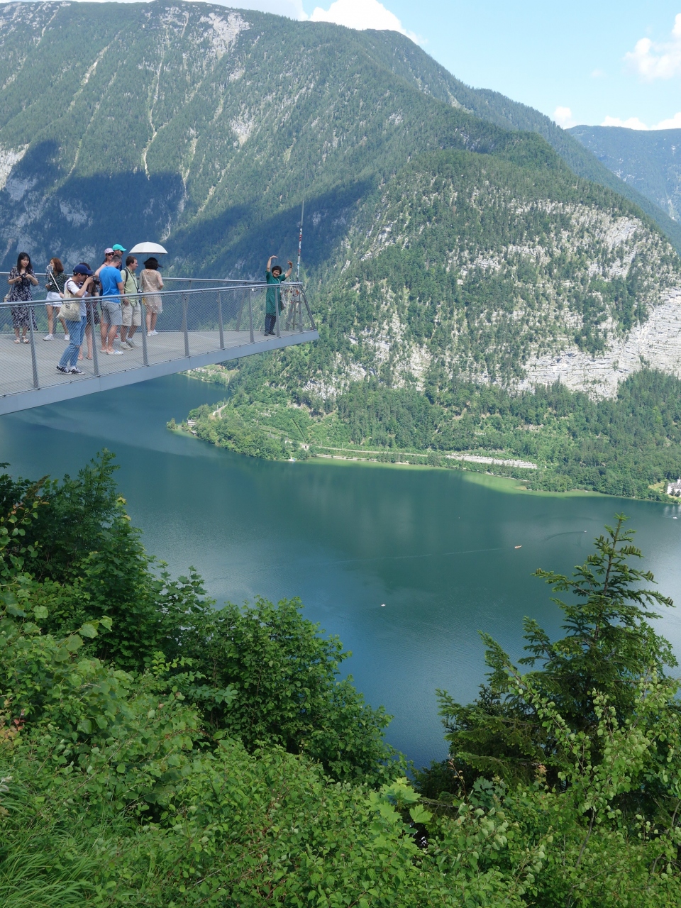 ハルシュタットの街からケーブルカーで登ります。降りたら少し歩きます。山から突き出た展望台です。(「橋」とはちょっと違うかな?)先っぽから見下すハルシュタット湖は,それはそれは,絶景です。ハルシュタットに来て,ここに来ない手はありません。マストです。