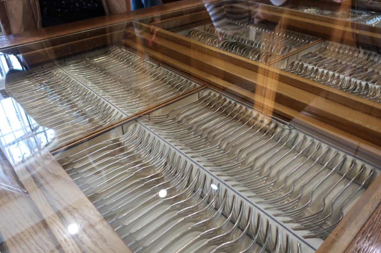 シシィチケットを購入していたので、こちらの「銀器博物館」へ入場することができました。ハプスブルク家の銀器、金器、磁器など、大量の食器が飾られています。また、複雑に、そして見事に折られたナプキン(白鳥など)も展示しています。しっかり全部を見学しようとすると、長時間が必要なほど、展示品がありました。
