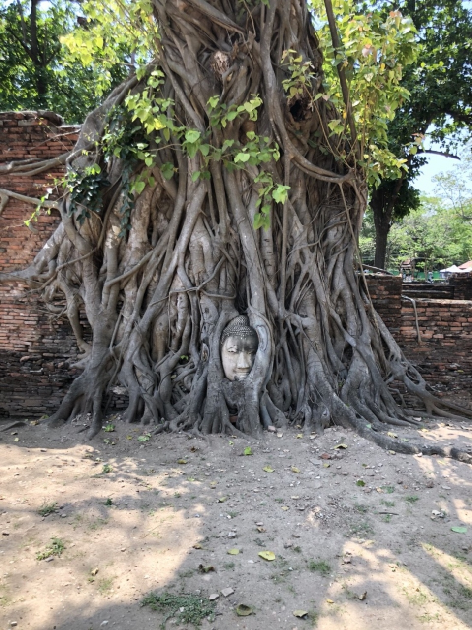 タイの観光雑誌を見ていたら必ず載っているワットマハタート!木の間に挟まった仏頭はとても有名。