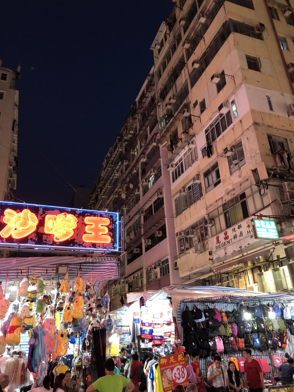 露店にはバック(パチモノ)を中心にスマホケースやTシャツ等の雑貨を扱うお店が1km程所狭しと並んでいます。友人はキャラクターの財布を二つ購入しましたが値札が付いていないので価格交渉。店主の提示額は一つ100HKDでしたが要らないと言って帰り掛けると電卓を出して来て希望価格を提示するように言われ50HKDと電卓に。結局二つで50HKDになり交渉成立しました。良品な商品は無いですが低価格で自分土産を購入するなら面白いエリアです。