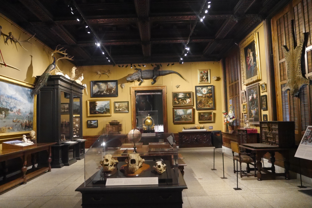 入口から階段を登ると宮殿を思わせる造りになっていて、吹き抜けのホールを囲む回廊にはレリーフやタペストリーが飾られ、テーマ別に仕切られた部屋に通じています。鎧や武器、自然史の標本、エジプトや仏教文化資料も展示され、その間に絵画が壁に飾られています。