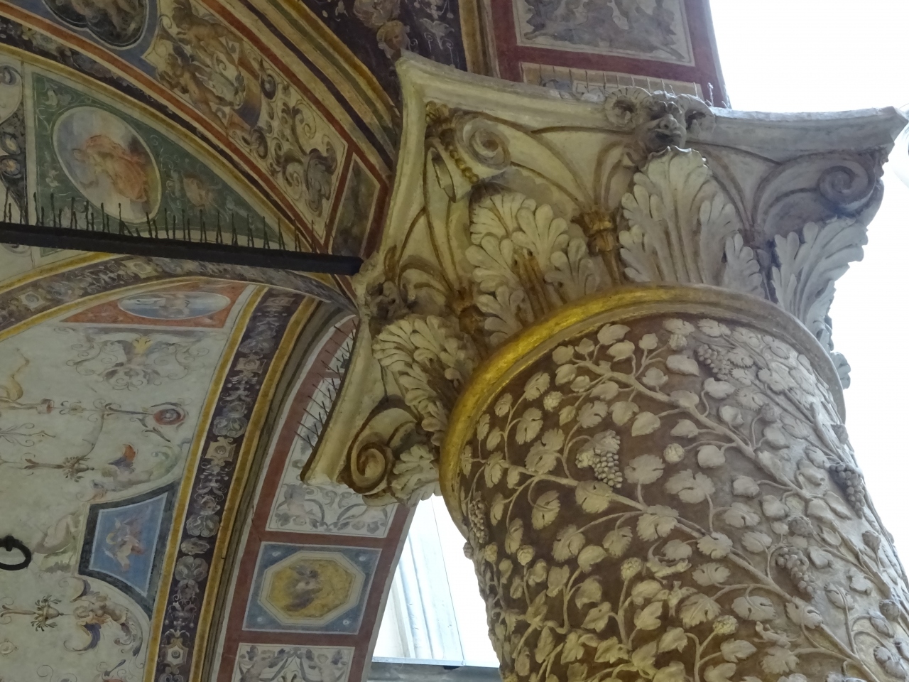 中に入ると、明るい陽射しが射す回廊、そして壁に描かれているモザイク画に目が釘付けです。