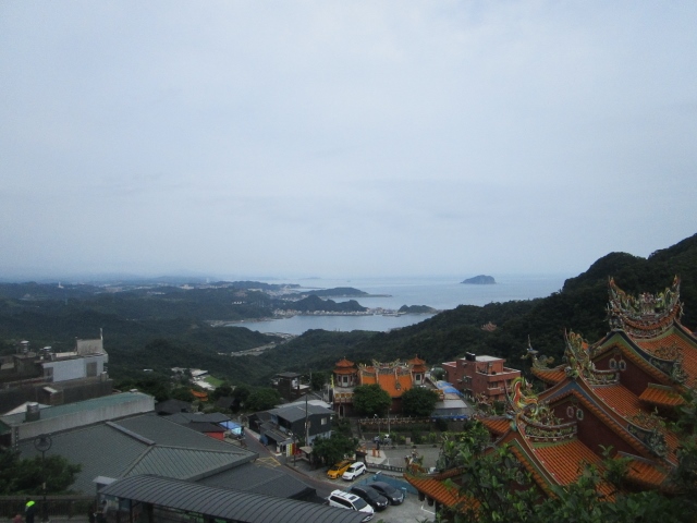 九份の九份老街バス亭(台北方面行 )の真下に、極彩色の美しい屋根。