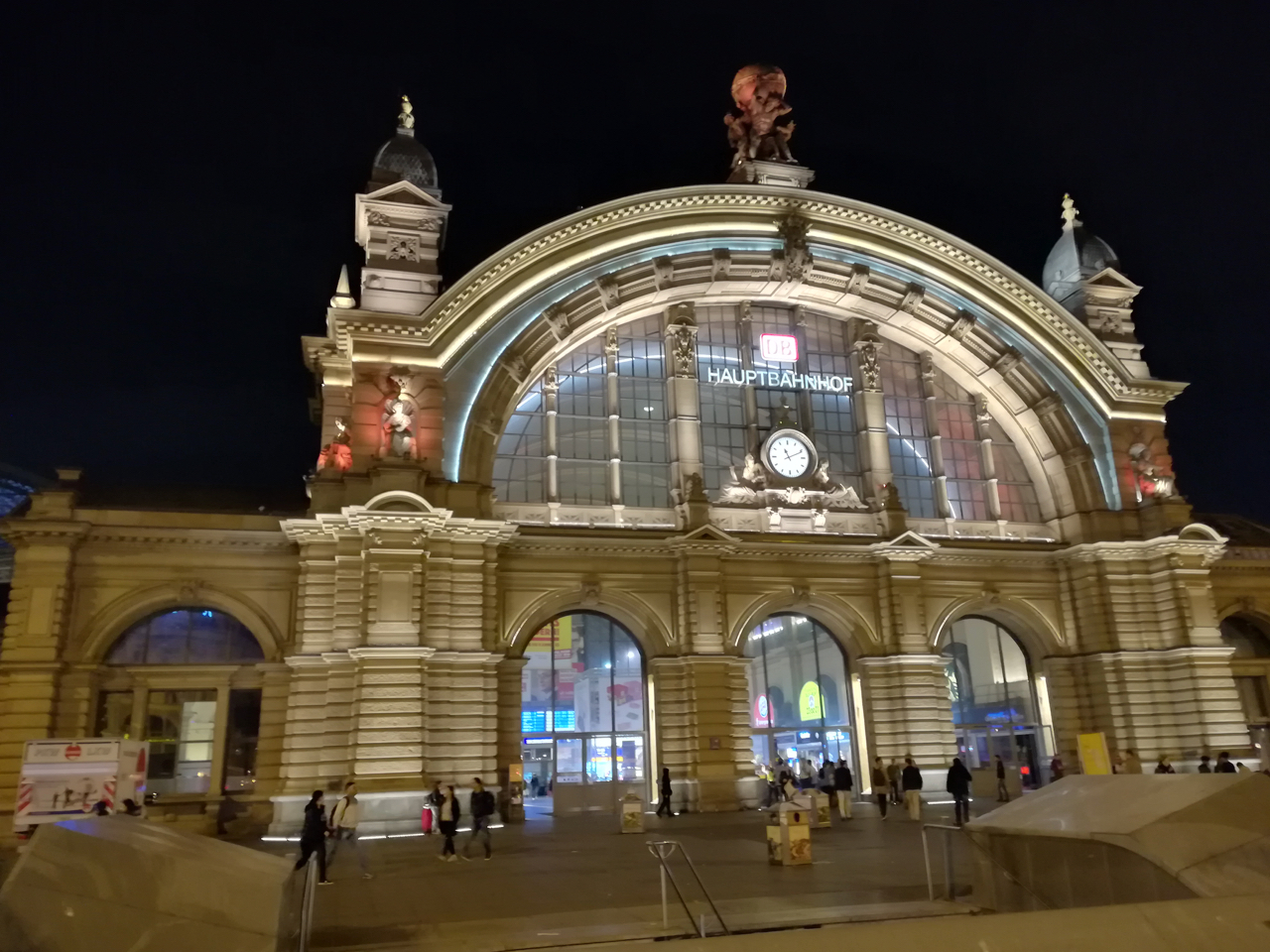 フランクフルト中央駅ですが、夜に訪問するときれいでした。ドイツは公共交通機関が充実しているので、空港から電車で移動しました。ホームは地上と地下で別れているので、やや注意する必要があります。改札はないので、切符を買ったらそのままホームに移動です。