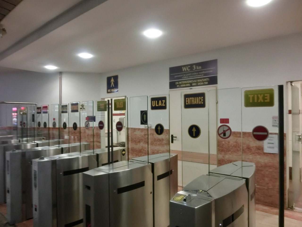 2階がチケットカウンター、カフェが数軒、パン屋2軒、有料トイレなどがありました。