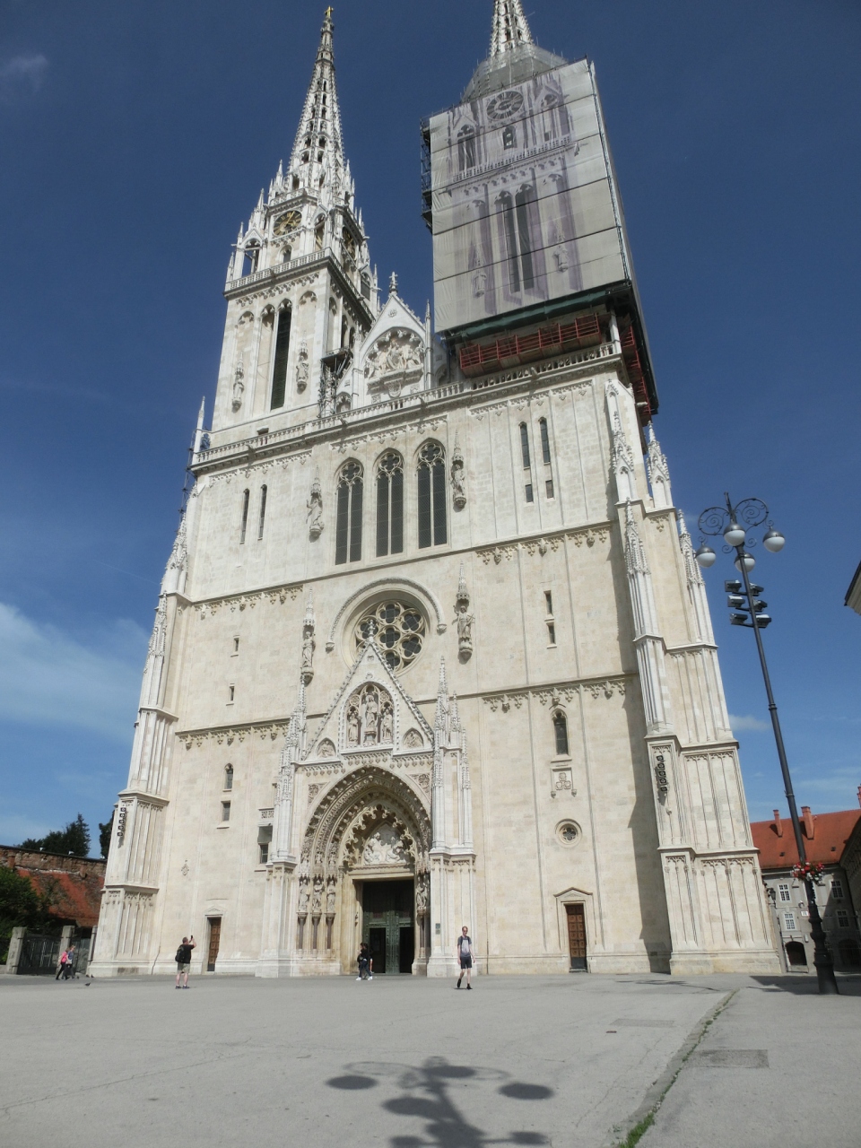 ザグレブいち大きくて目立つ教会です。自分が行ったときは塔の片方が修繕中でした。
