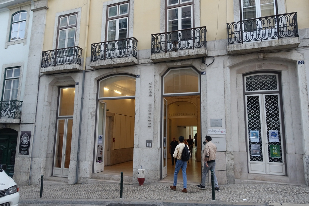 マダレナ通りはバイシャ地区で南北方向に走る通りの中では一番東に位置しています。平坦な通りではなく、中間付近を頂点にして、南北それぞれの方向に向かって下り勾配の地形。この一番高くなっているマダレナ通りの中間付近を挟んで東西に無料で乗れるエレベーターがあります。上りは「Elevador Castelo」、下りは「Elevador Baixa」と表示されています。