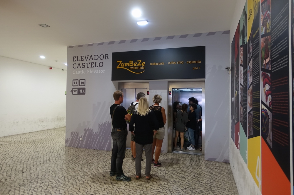 この2つのエレベーターを乗り継ぐことで、バイシャ地区から丘の上のサンジョルジェ城方面に行くことができます。自分は城からの帰りにこのルートでバイシャ地区まで下りてきました。トラムの混雑を避けたい時や運休の時など、別のアクセス方法として使うのもアリかなと思いました。