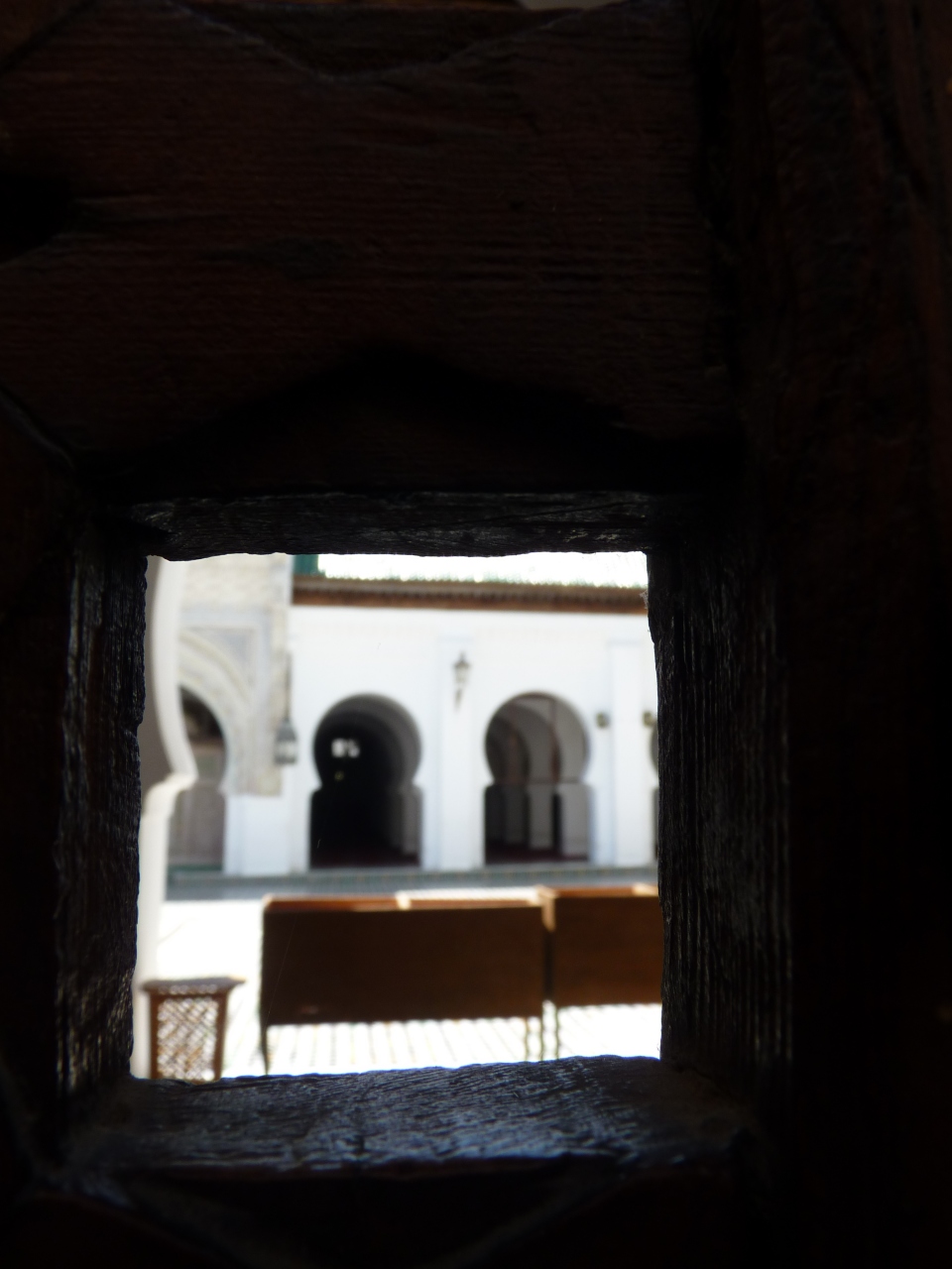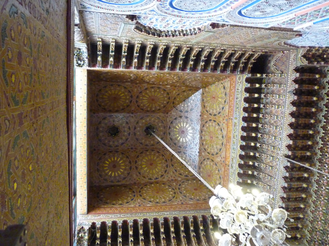 ガイドに従い迷路の坂道を上り下りして突き当たりで止まった。ここがこの地域の中でもっとも聖域地区に当たるザウイアムムーレイイドリス廟で外からの見学はOKだがイスラム教徒以外は立ち入り禁止地区になっている。外から見る限りは内部は豪華な装飾がしてあり、いかにも聖地らしい雰囲気が漂よっていた。