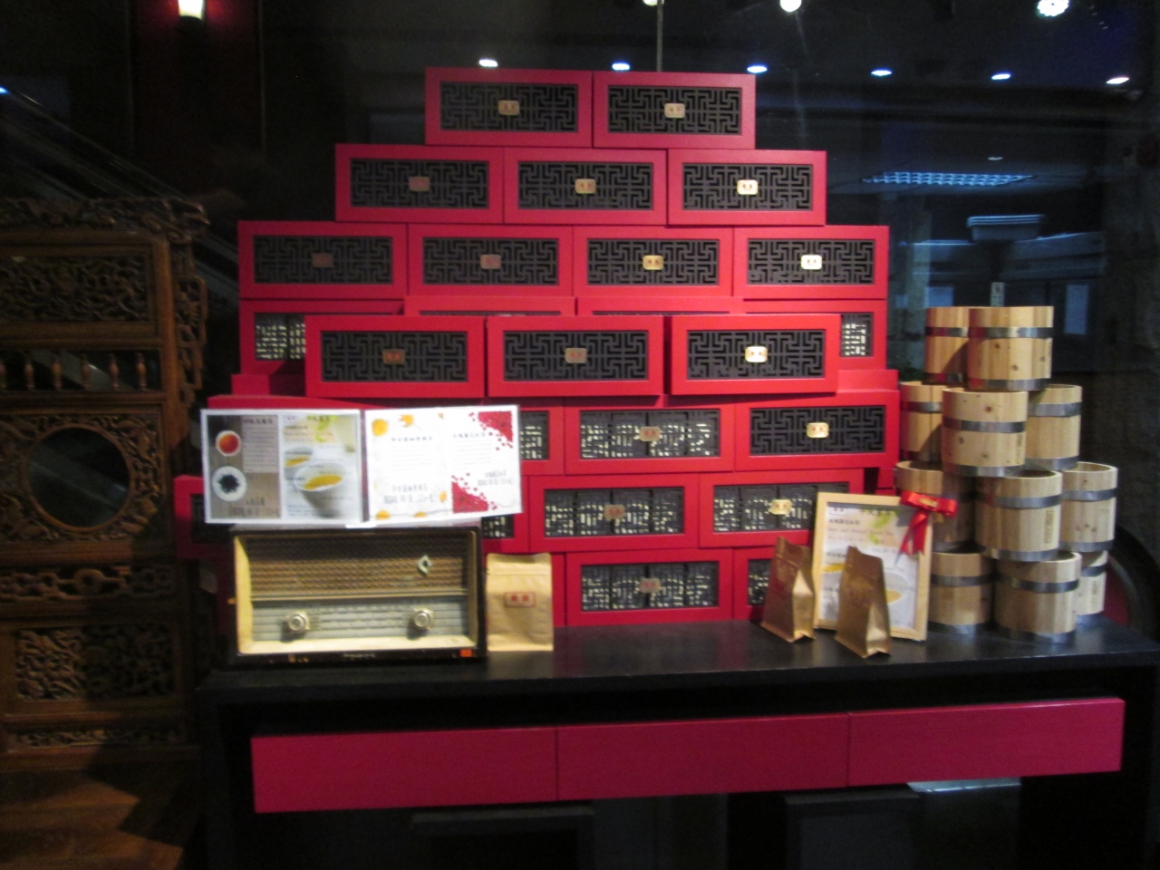 糖朝の入口はチャイニーズ・テイストのデコレーションがミックスされたような雰囲気でした。また、厨房に当たる部分の壁が岩のようだったり、生きた魚の入っている水槽や、せいろなどで蒸している様子や食材がガラス張りで厨房が外から見られるようになっていました。