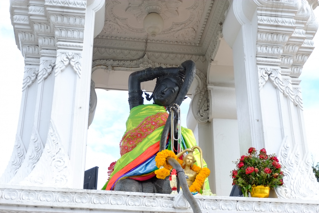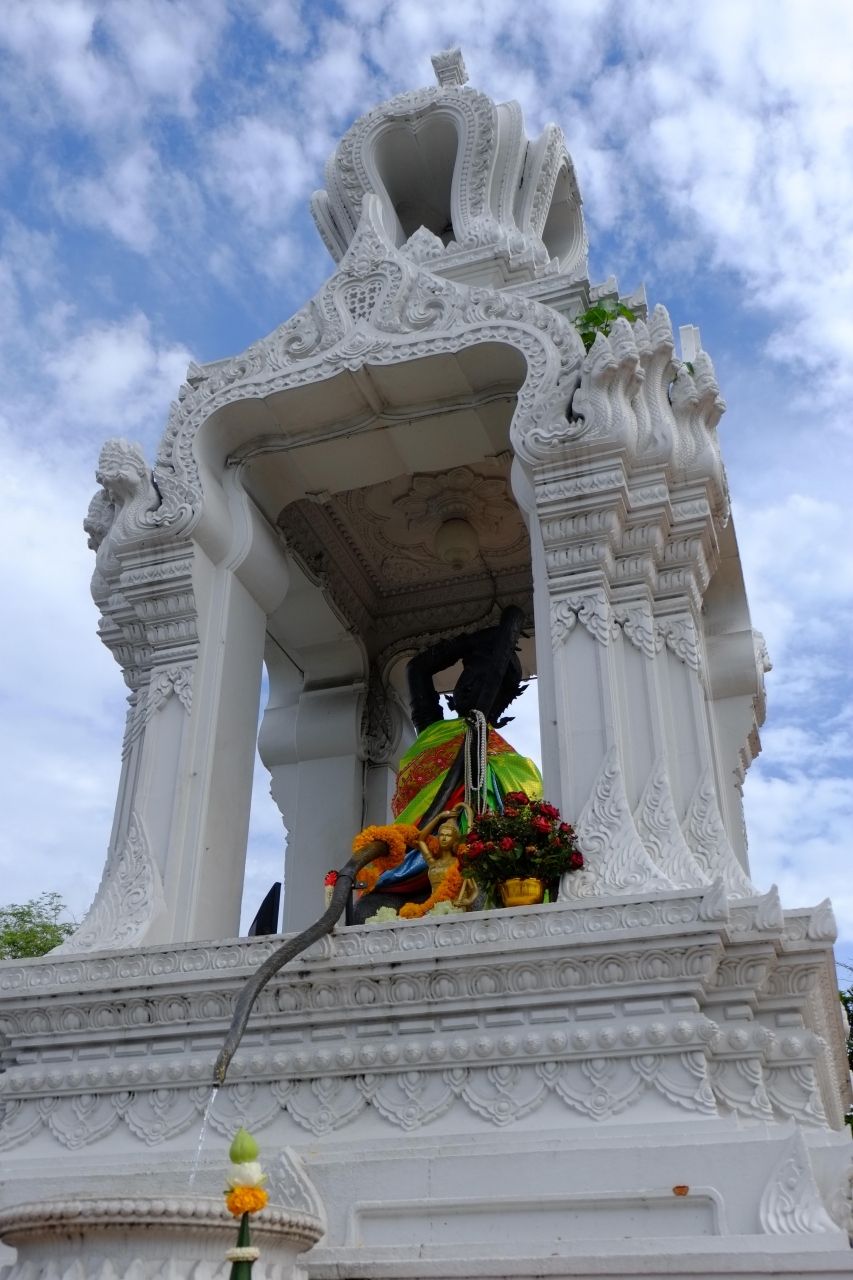 王宮前の広場サナーム・ルアンに面した小さな公園の中にあります。首を傾げた女神像はあまり目立たない祠の中にあるので、最初は見逃してしまいました。主な観光ポイントからは少し離れているので、わざわざ足を運ぶというほどでもないです。