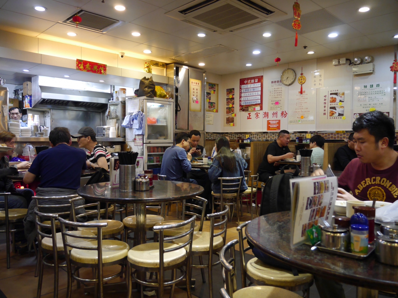 ガヤガヤの店内香港のマストなグルメ雲呑麺