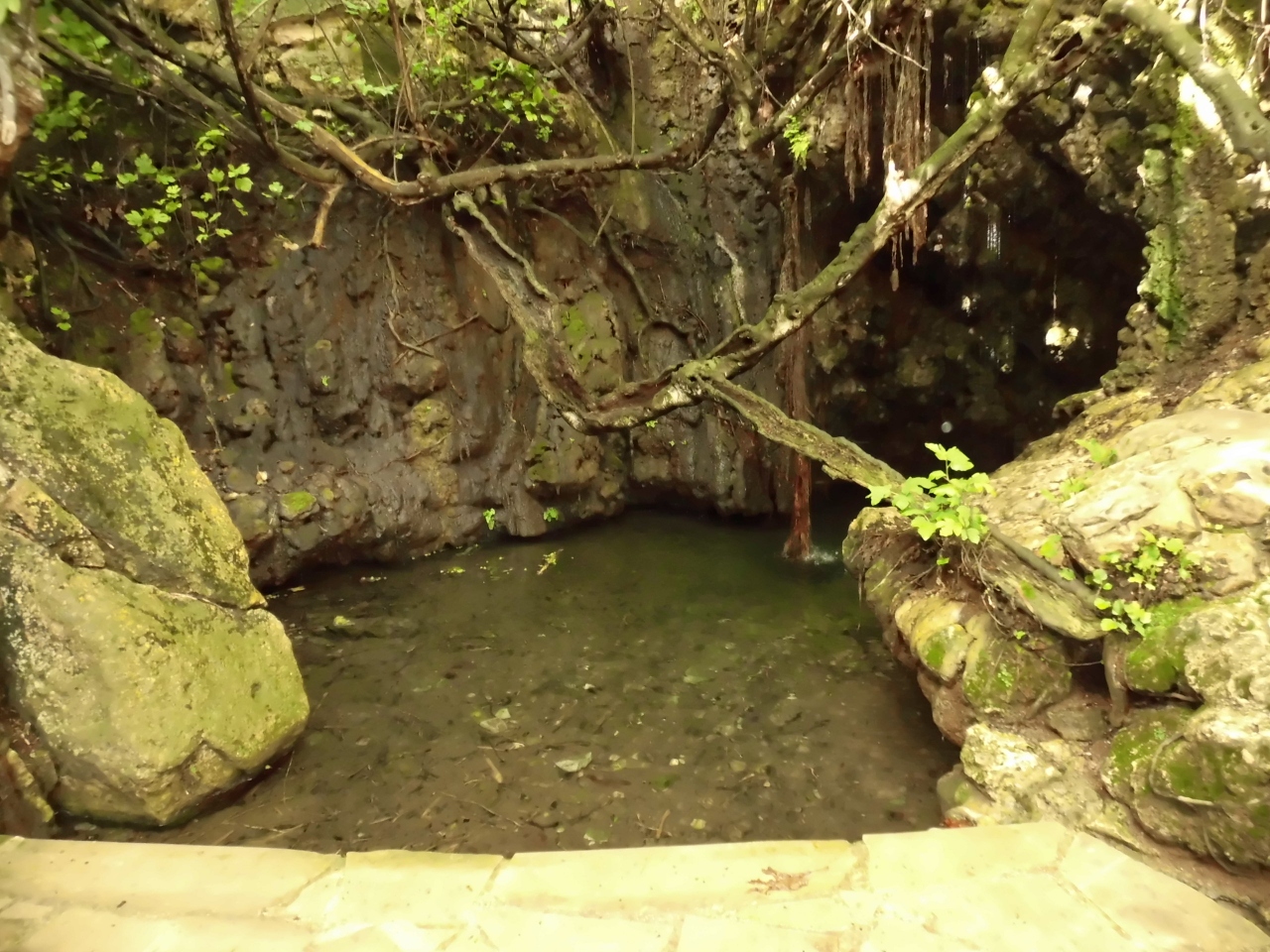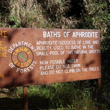 「アフロディテの泉」は沸き水のような所。案内板がなければわからなかった。 小魚が泳いでいました。