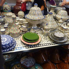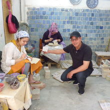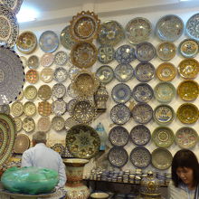 フエスはモロッコ一の冬季の産地であり、あちこちにモロカン陶器の工場がある。伝記画まで焼くが2度焼きしているためしっかりとした焼き物が出来ている。幾何学模様の組み合わせで出来たゼリージャや色鮮やかな器の数々が目の前でデモンストレーシュンして見せてくれる。
