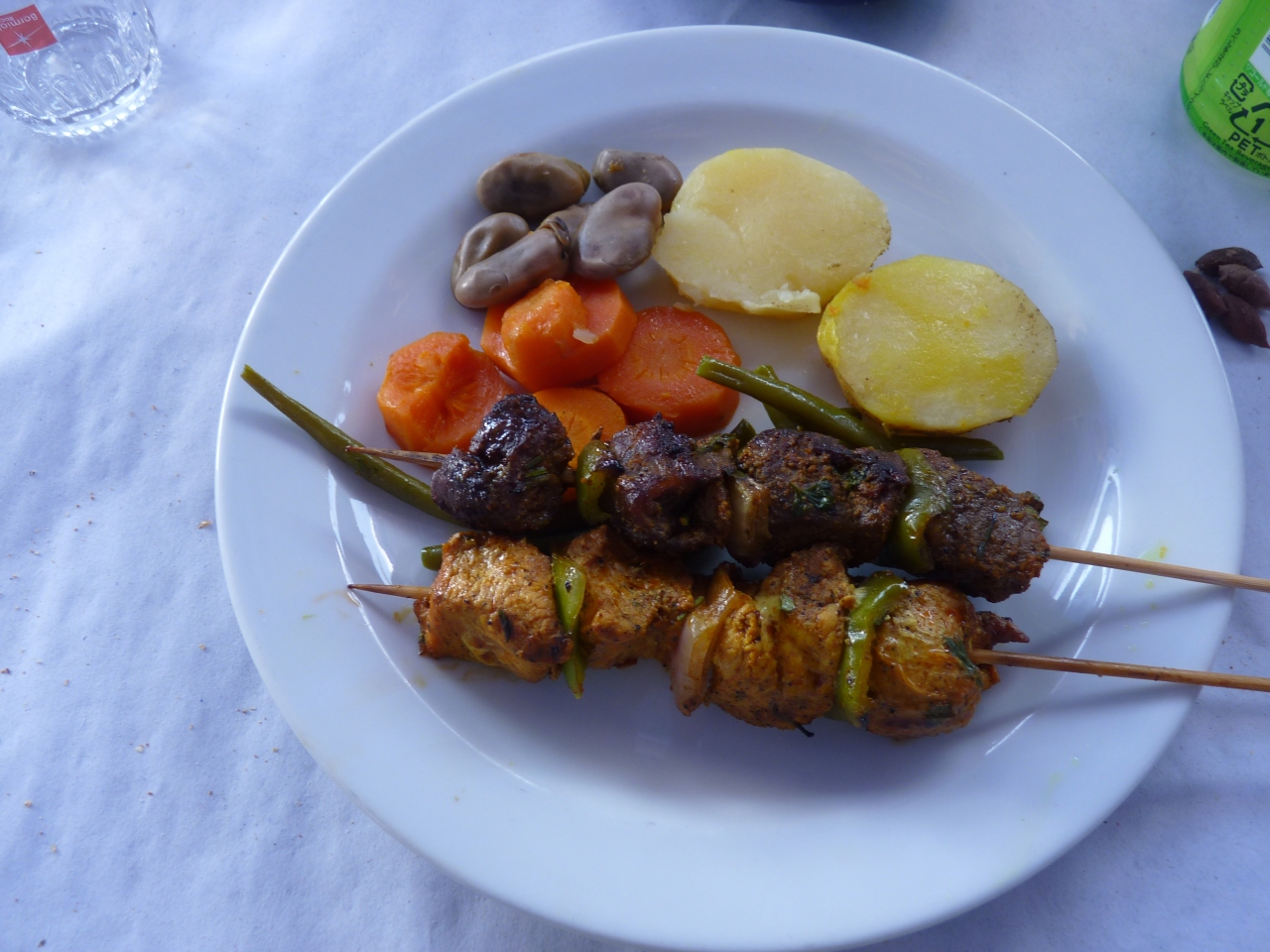 ツアーでの昼食でガイドに引率して案内された食堂で階段をあがり3階が食堂となっている。本日のメニューはケバブでした。日本の串焼きに野菜等がはさまれここの伝統料理ですが味はまあまあ・・そばで女性が釜で湯を沸かし何をしているかを聞くとヲーズウオータを作っているとの事で、ボトルにつめてもらった。