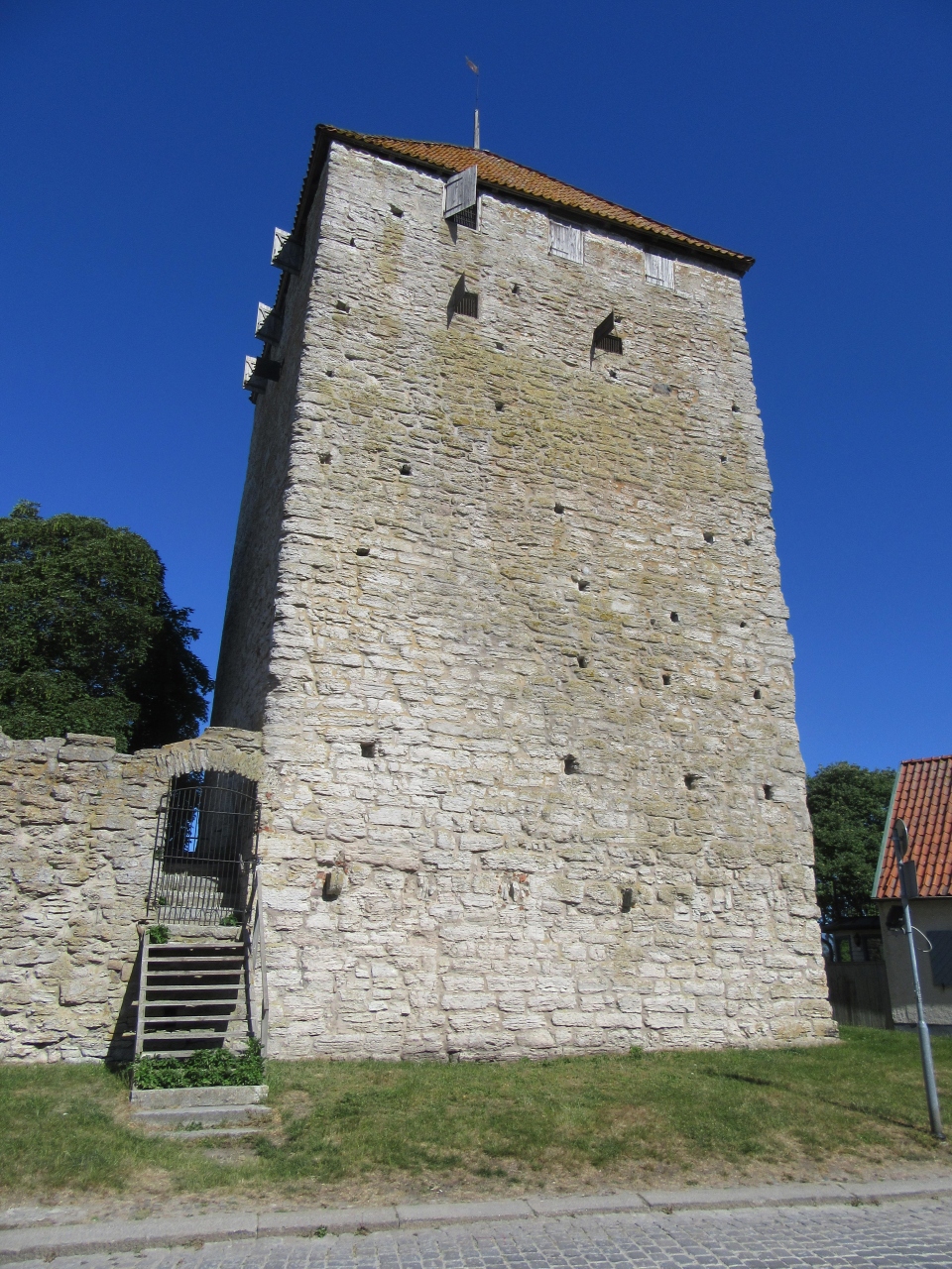 ゴットランド博物館で鍵を借りれば、火薬塔の中を見学することもできるようですが、今回は外見だけ。ゴットランド滞在中2度ほど訪れましたが、中を見学している人は見かけませんでした。この建物は1100年代につくられたヴィスビー最古の建造物で昔は火薬庫として使われていたものです。火薬塔の城壁に沿って遊歩道が続いているので、海風にあたりながらの散歩は気持ち良かったです。