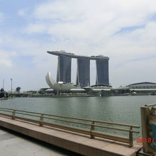 斜め右にマリーナベイサンズを見ながらマリーナプロムナードを歩いて行きました。