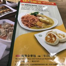 定番のチャーシューメロンパン、大根餅、おかゆを注文。味は美味しい。ただし、価格は香港並み。同じフロアのフードコートの3倍くらいするかも。
